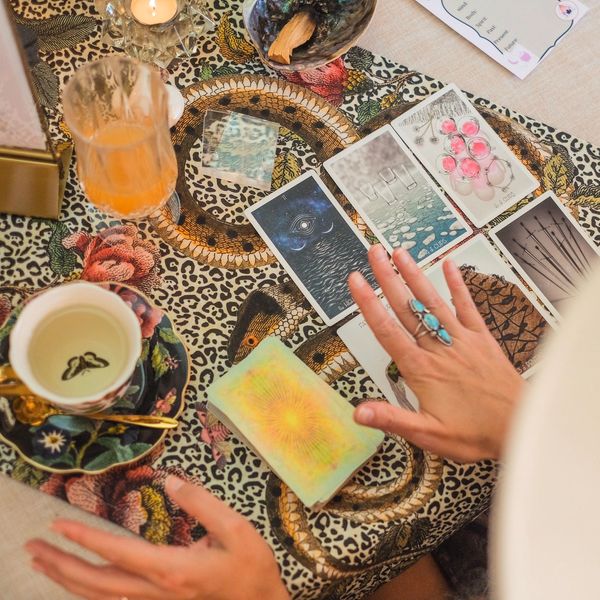 I offer numerous options for readings. In person at markets (see the markets tab), virtual over Zoom (book below), emailed via audio clip (see below), or a private party. For information on my magical Tea & Tarot gathering see below. Lastly, for FREE Full & New Moon Astro chats and collective Tarot readings follow me on Instagram.